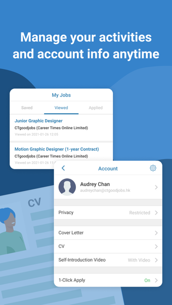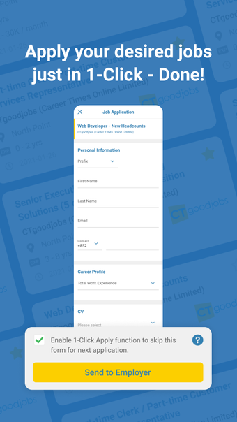 O CTgoodjobs é um aplicativo gratuito para Android que facilita a busca de empregos em Hong Kong, abrangendo diversas áreas como varejo e serviços. Com uma interface bilíngue, o usuário pode filtrar vagas por salário, experiência e localização, além de salvar anúncios e histórico de aplicações. O recurso de Batch Apply permite candidatar-se a até 10 vagas simultaneamente, otimizando o processo de busca.